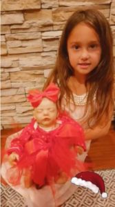 Primero Pamela Díaz compartió una fotografía en sus redes sociales donde su hija aparece junto al pequeño muñeco con un pomposo vestido rosado, como si estuviera vestido para la cena de Navidad.