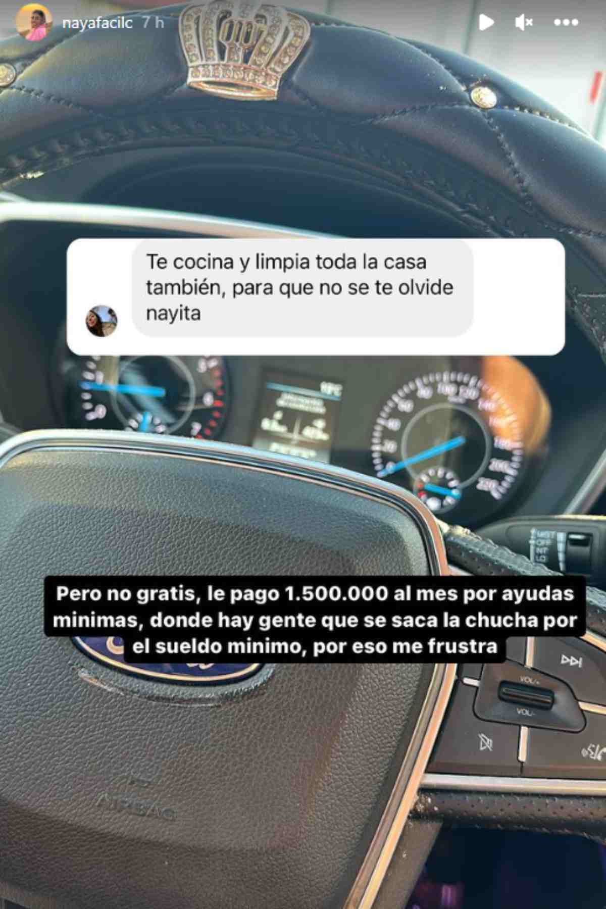 Y fue en ese momento que la influencer aclaró que su familiar no hace esto "gratis, le pago 1.500.000 al mes por ayudas mínimas, donde hay gente que se saca la chucha por el sueldo mínimo. Por eso me frustra".