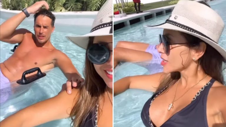 En los registros se puede ver a la pareja disfrutando de la piscina del resort, mientras los hijos de Arturo Vidal disfrutan de las atracciones del lugar.