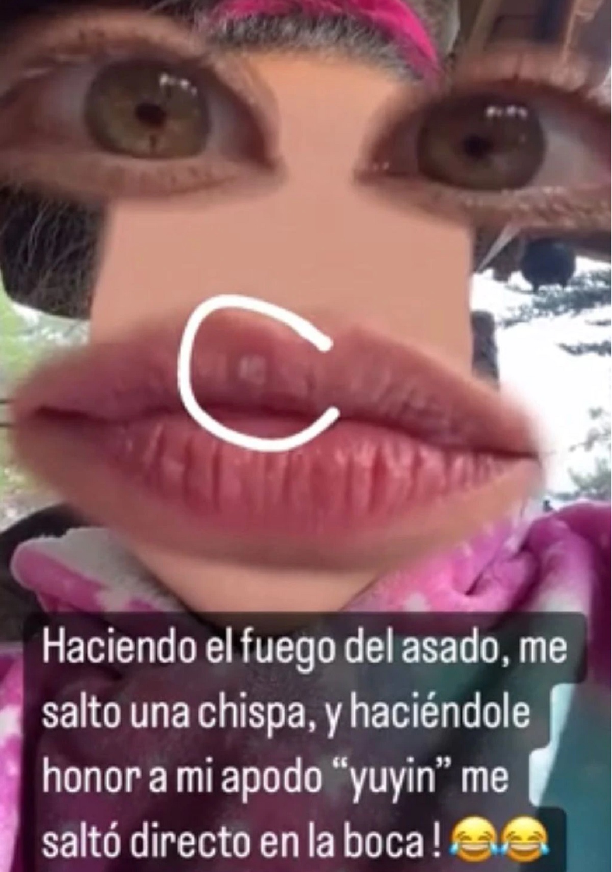 A través de sus historias de Instagram, María José Quintanilla indicó: “Haciendo el fuego del asado, me saltó una chispa”, comenzó diciendo la artista, y luego continuó bromeando con esta situación: “Haciéndole honor a mi apodo ‘yuyin’, me saltó directo en la boca”.