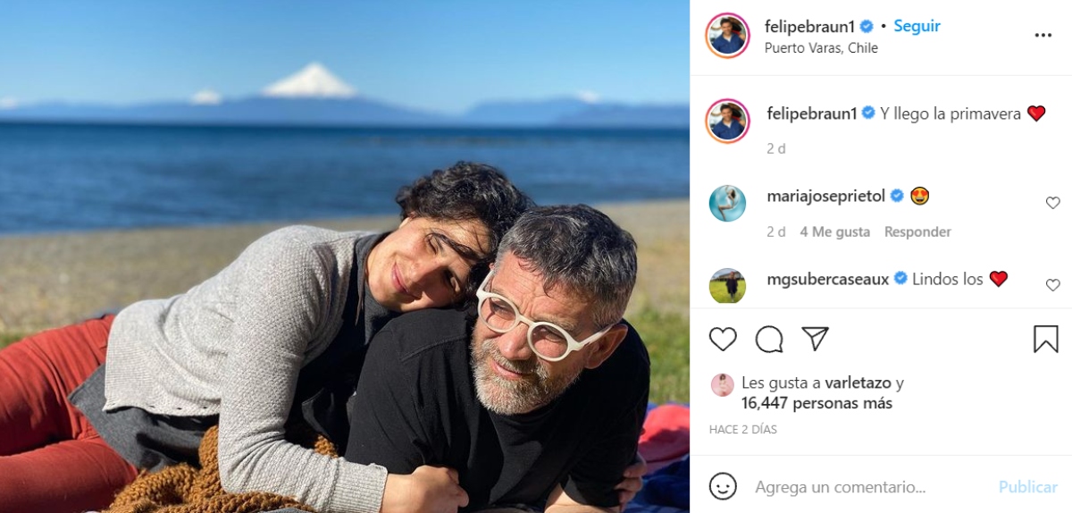 Como te contábamos más arriba, el actor Felipe Braun subió una foto a sus redes sociales, específicamente en su perfil de Instagram, donde se le puede ver junto a su pareja, Sofía Schmidt, quien no suele aparecer en sus publicaciones.