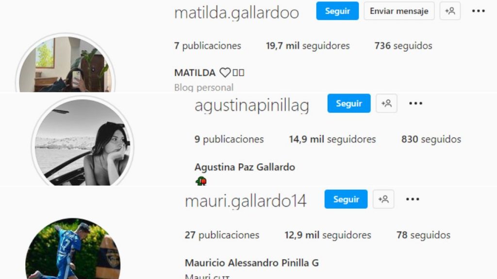 Matilda dejó solo este apellido en sus redes sociales al igual que pequeño Mauricio. Por su parte Agustina acompaña su nombre con Paz Gallardo, a pesar que aún se puede leer el Pinilla en el usuario oficial de Instagram.