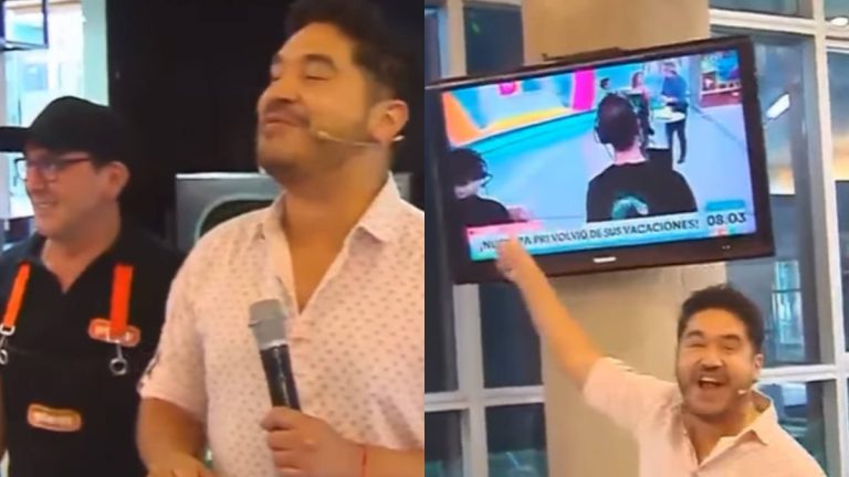 "Oye, no, espérate...", dijo Gino Costa para dirigirse a la televisión, apuntándola para mostrar así que estaban emitiendo el Tu Día de Canal 13.