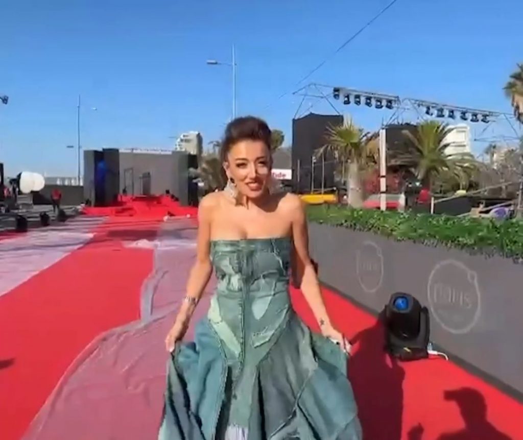 Bien temprano se presentó Yamila Reyna en la alfombra roja de la Gala de Viña. Allí, fue entrevista por T13 y fue frente a las cámaras que mostró el increíble vestido sustentable que eligió para esta ocasión.