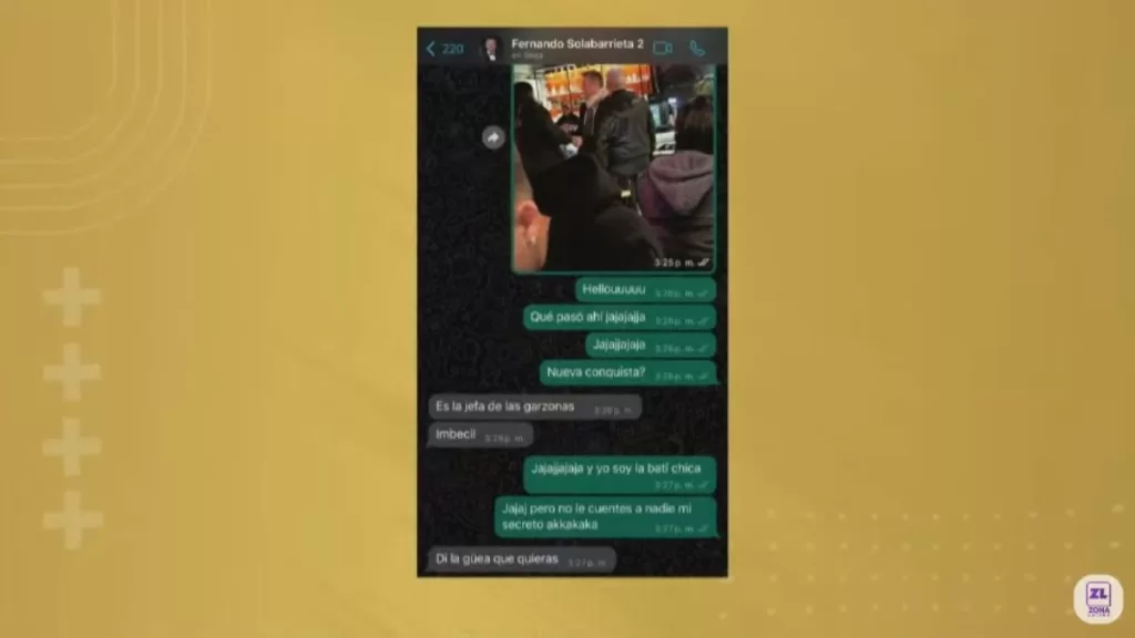“Jajaja pero cálmate, respira conmigo”, continuó el periodista de farándula. “Para eso usas micrófono”, respondió Solabarrieta mientras que el comunicador insistió en que por eso lo contactaba directamente, para conocer de primera fuente de quién se trataba la mujer.