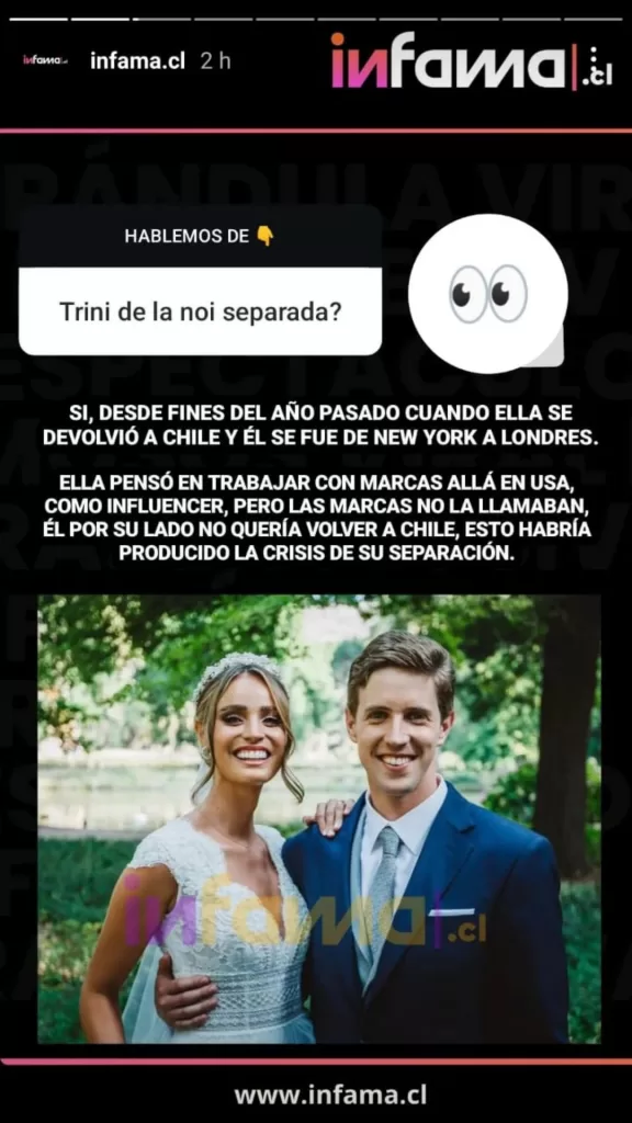 El sitio Infama también se refirió a la polémica, afirmando que Trinidad de la Noi se encuentra separada desde fines de 2023.