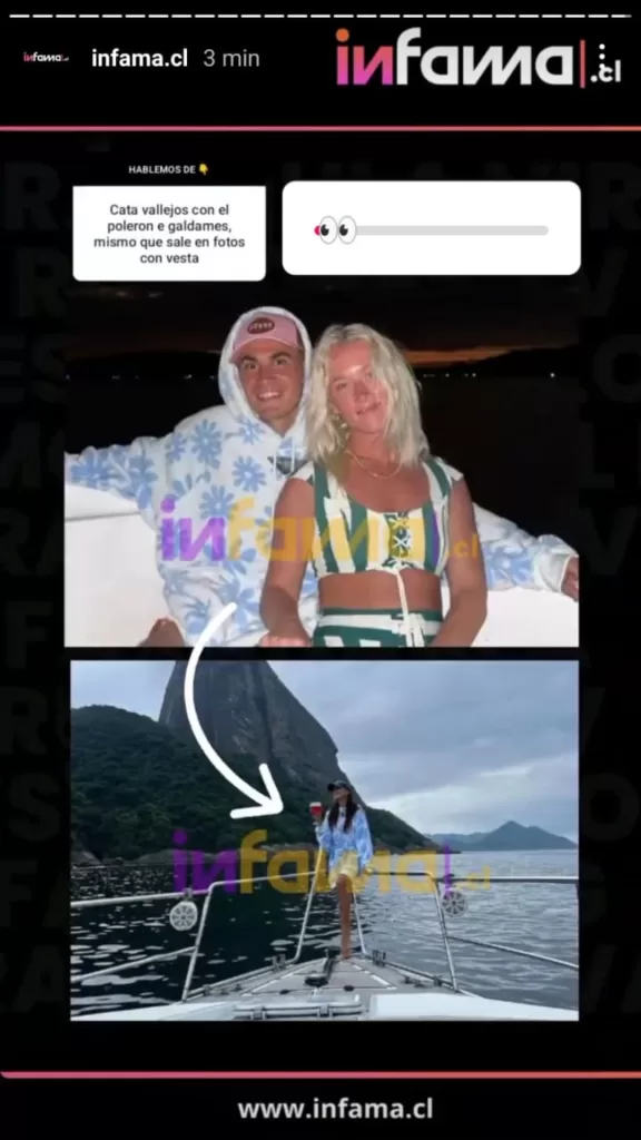 "Cata Vallejos con el polerón de Galdames, mismo que sale en fotos con Vesta", escribió una usuario. El medio compartió un collage donde se ve en una foto a Vesta Lugg y Galdames posando mientras que el galán usa un polerón que recientemente usó la ex Calle 7.