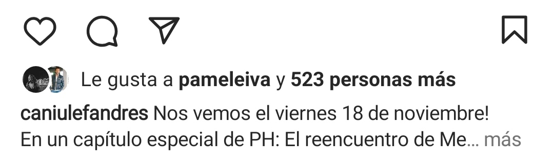 "Nos vemos el viernes 18 de noviembre! En un capítulo especial de PH: El reencuentro de Me Late", escribió Caniulef a través de su cuenta de Instagram.