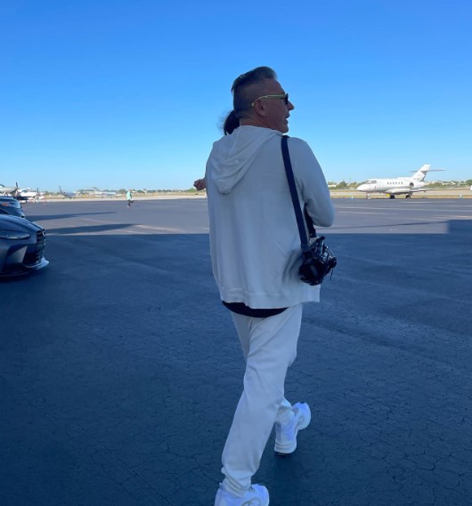 "Ella y yo nos vamos de vacaciones… #IndigoySuAbuelito", escribió el artista al pie de la fotografía en la que lleva a la bebé en los brazos.