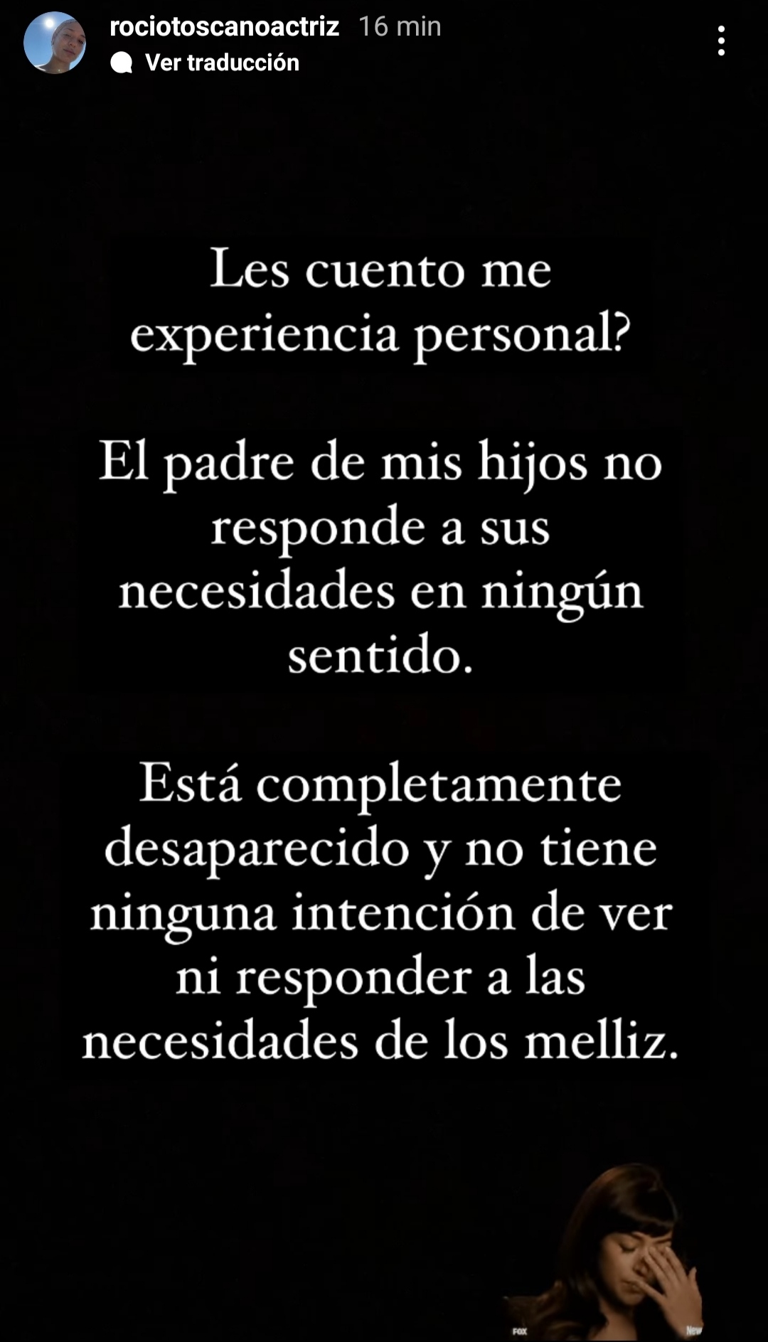 'Les cuento mi experiencia personal? El padre de mis hijos no responde a sus necesidades en ningún sentido', comenzó relatando Rocío Toscano en sus historias de Instagram.