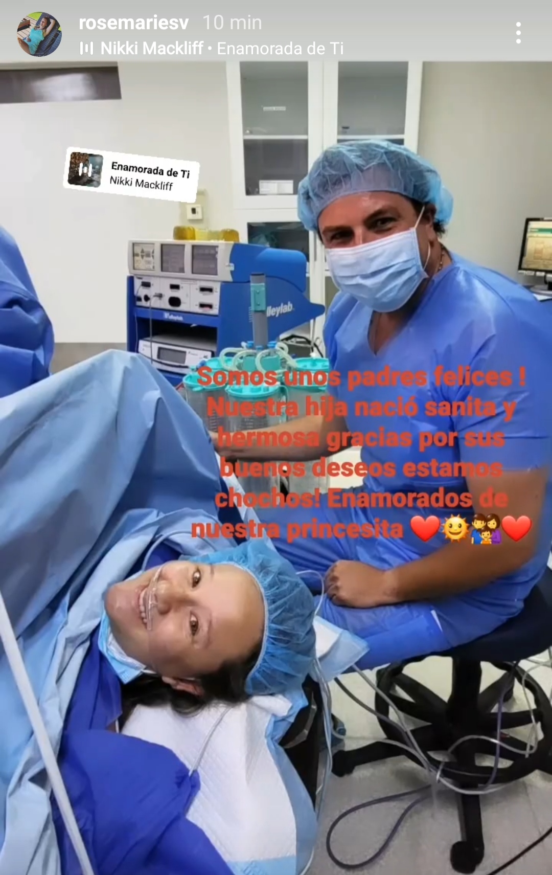 "Gracias por sus buenos deseos, estamos chochos! Enamorados de nuestra princesita", agregó para acompañar una postal que subió desde la clínica a sus historias de Instagram.