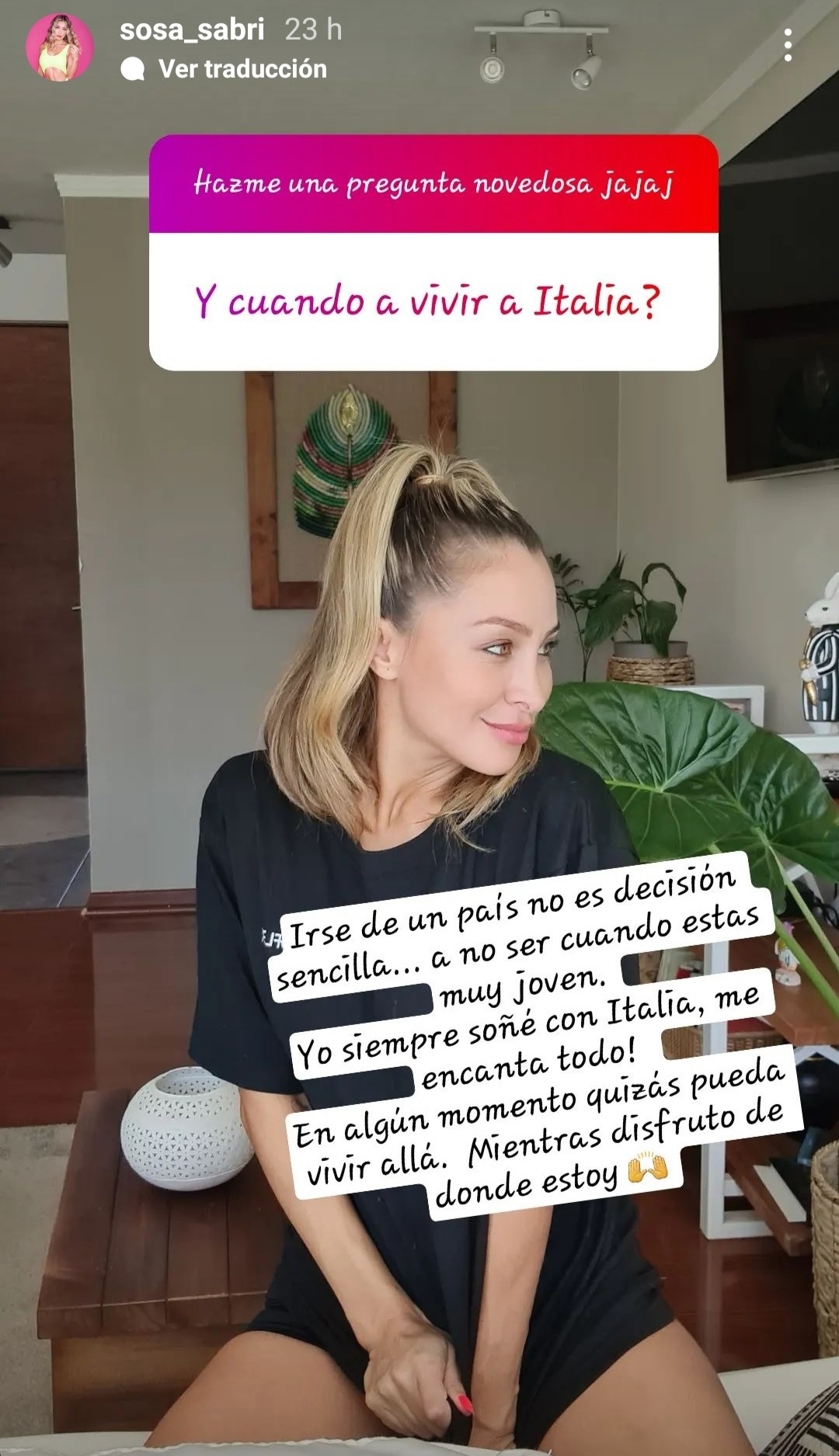 "Irse de un país no es una decisión sencilla. A no ser cuando estás muy joven. Yo siempre soñé con Italia, me encanta todo. En algún momento quizás pueda vivir allá. Mientras disfruto de donde estoy", se sinceró.
