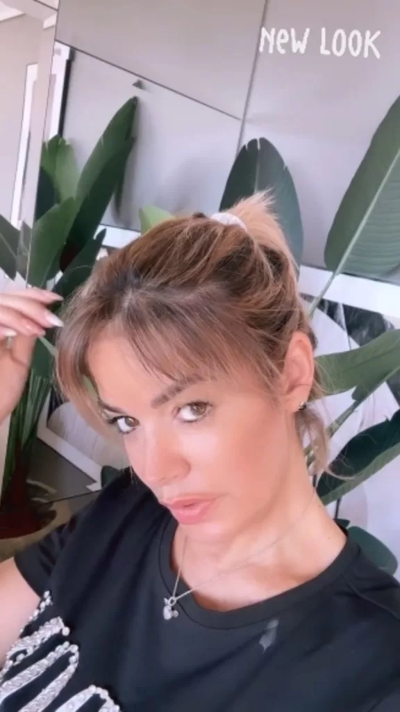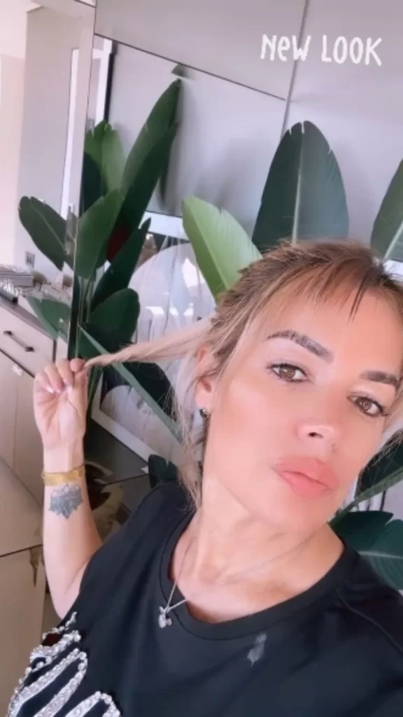“Holi, holi. Cambiamos un poquito el look, unas mechitas acá adelante y atrás el pelo no tan rubio para el invierno (…)”, expresó la modelo argentina luciendo una chasquilla y su cabello en tonos café.