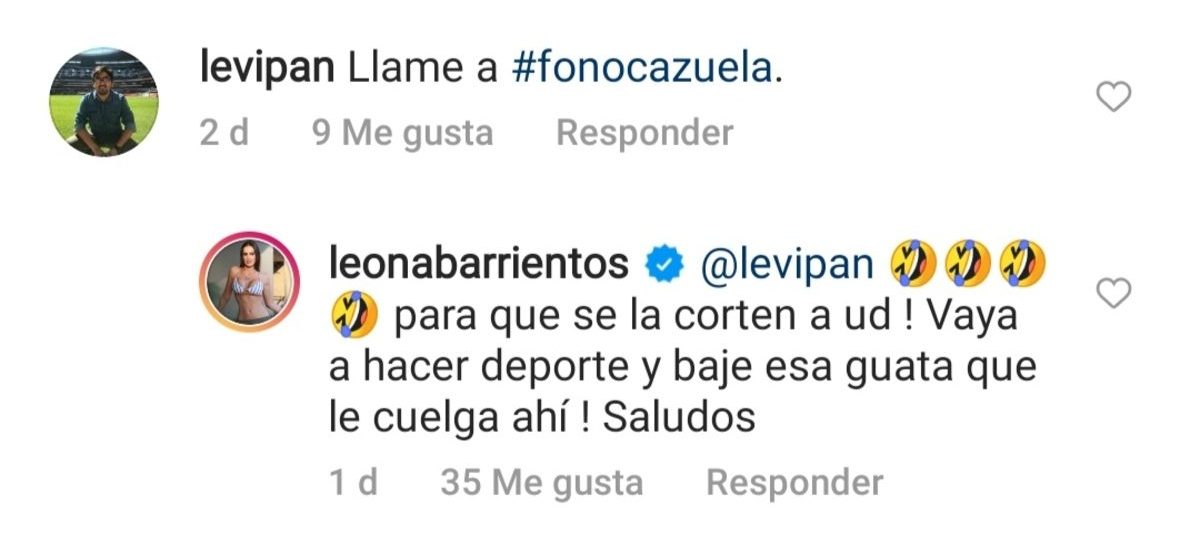 'Para que se la corten a ud! Vaya a hacer deporte y baje esa guata que le cuelga ahí. Saludos', respondió Adriana Barrientos.