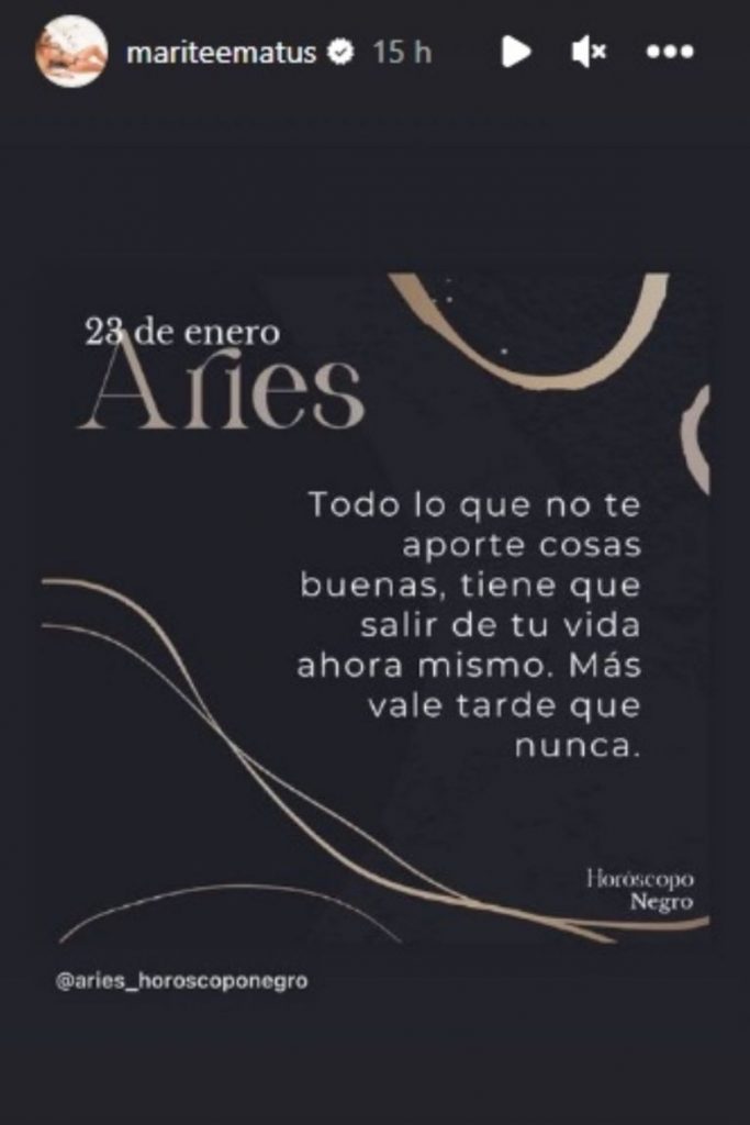 "Todo lo que no te aporte cosas buenas, tiene que salir de tu vida ahora mismo. Más vale tarde que nunca", dice la fotografía de una cuenta de horóscopos.