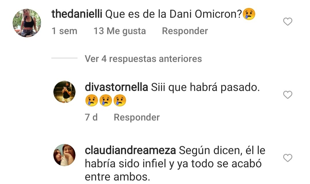 "Qué es la de Dani?", preguntó una seguidora, a lo que otra respondió: "Según dicen, él le habría sido infiel y ya todo se acabó entre ambos".