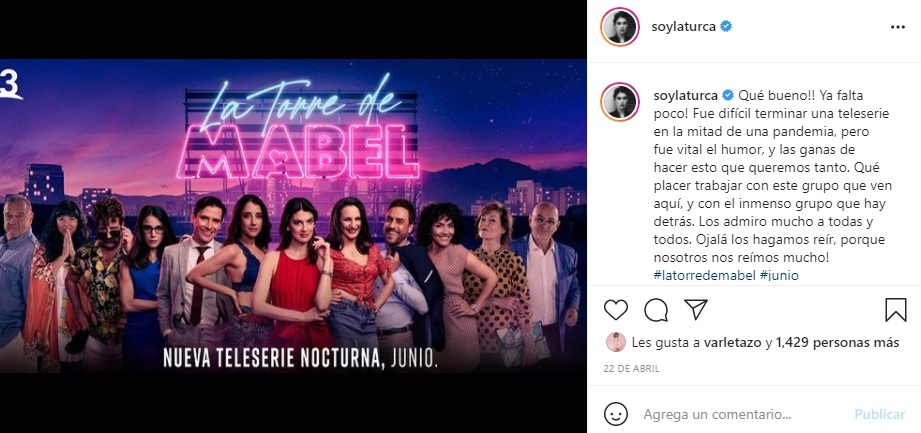 En su último post de Instagram, la intérprete contó que ya queda nada para terminas las grabaciones de la ficción, que es estrena en junio. Esta contará con otros actores de renombres, como Blanca Lewin, Álvaro Espinoza, Elisa Zulueta, Mauricio Pesutic, Coca Guazzini, Malucha Pinto entre otros.