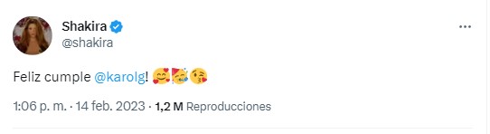 Todo esto tomó otra dimensión cuando este mismo 14 de febrero, Shakira felicitó a Karol G por su cumpleaños a través de Twitter. La barranquillera dedicó palabras para su colega, haciendo realidad un sueño.