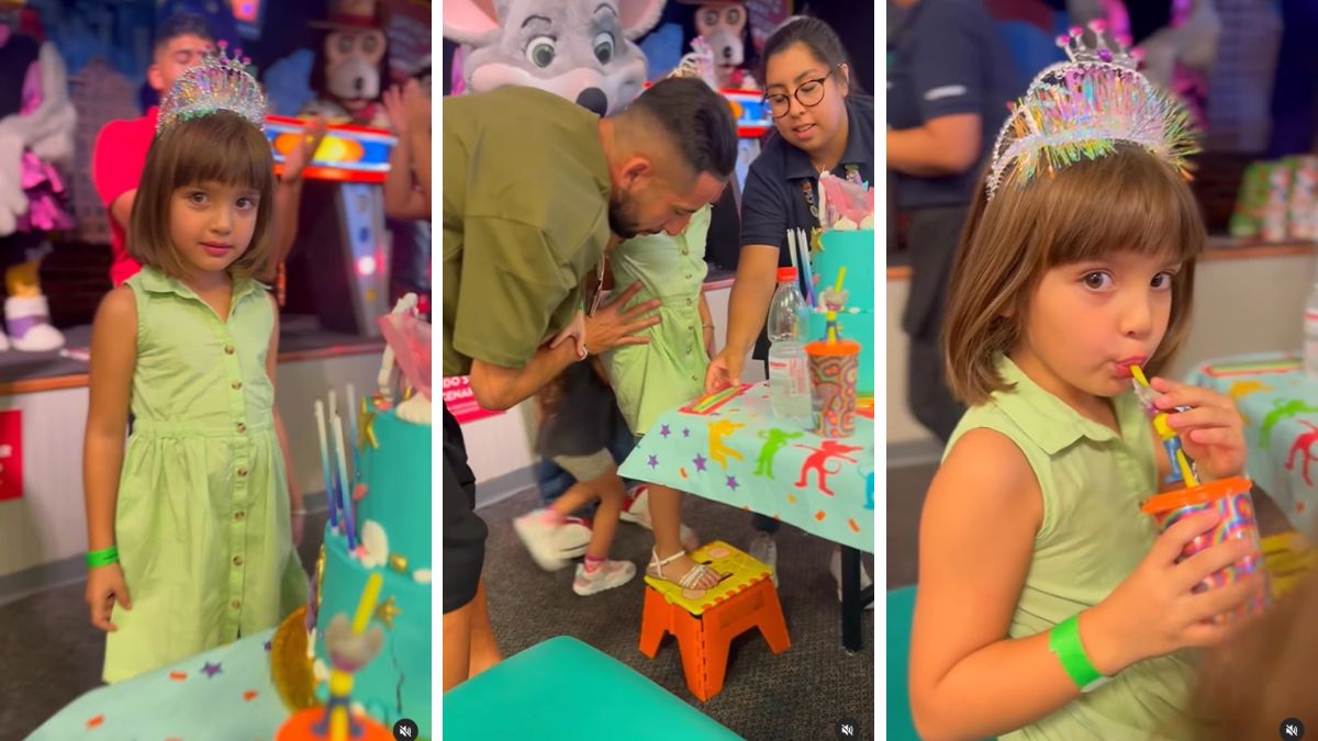 El futbolista y la modelo compartieron varios registros de lo que fue su atractiva fiesta en un Chuck E. Cheese.