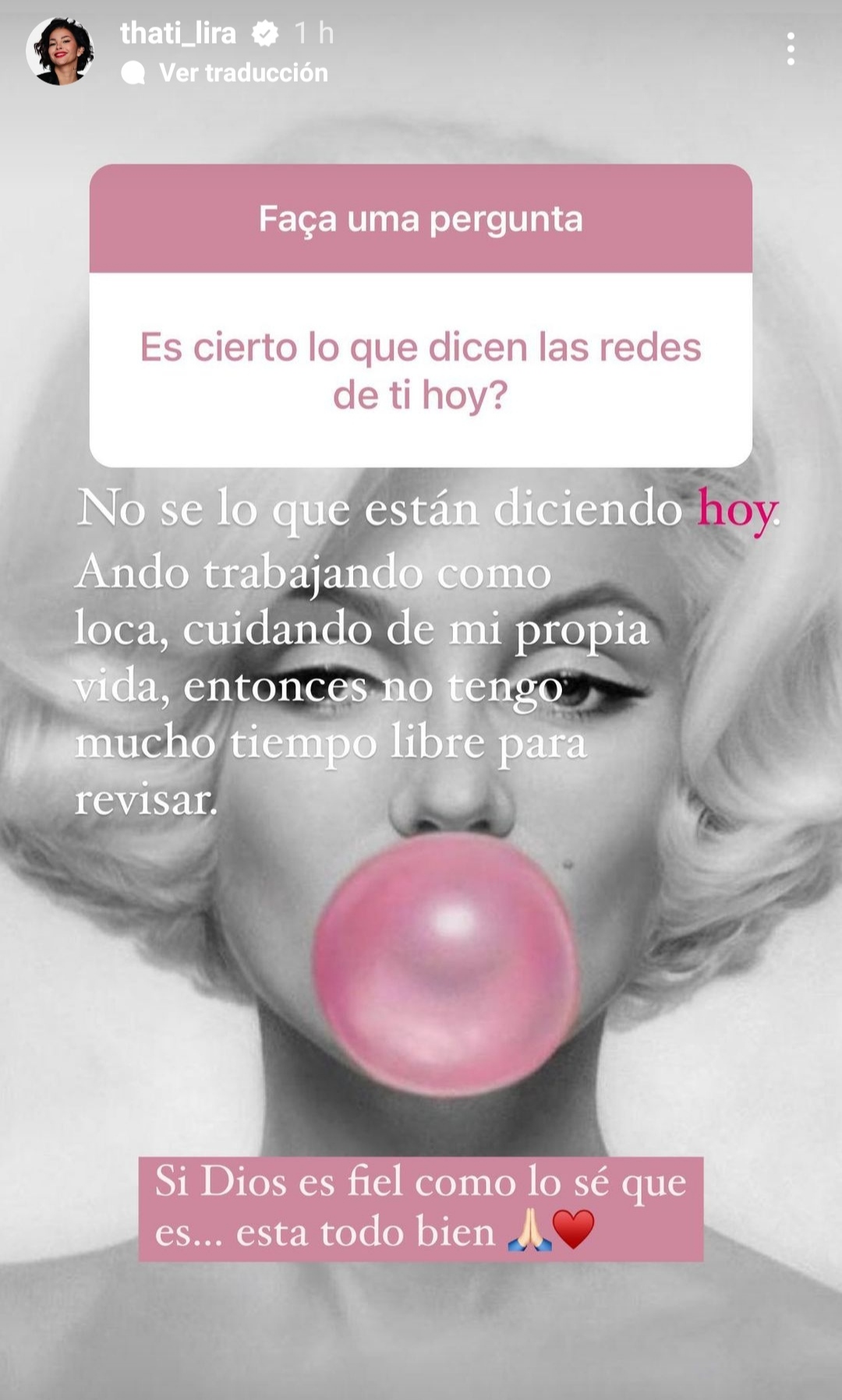"Es cierto lo que dicen las redes de ti hoy?", le consultaron a Thati aludiendo evidentemente a su romance.