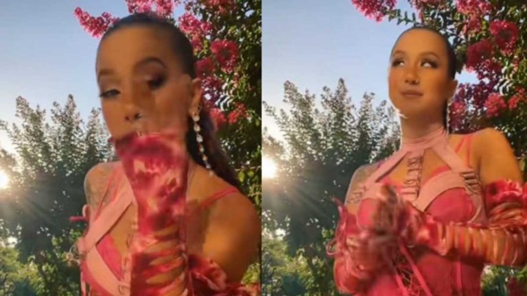 "🙊🤷🏽♀️💞 Esta difícilmente posible 💞🤷🏽♀️🙊 Juju", escribió la cantante nacional al pie del video en el que lució un outfit rosa muy original. El cabello, en tanto, lo llevó suelto.