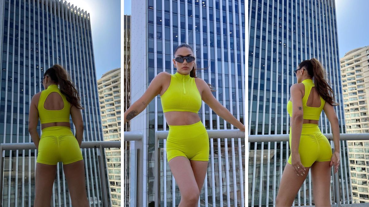 En las postales se puede ver a Silva en una especie de terraza posando un osado outfit de color flúor.
