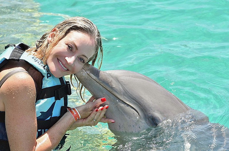 Después de esto fue ella misma quien subió una seguidilla de fotos, cada uno en la pose típica donde el animal te da un adorable beso en la mejilla. "Qué maravilla compartir con los delfines 🐬! Son realmente increíbles!!! Una experiencia inolvidable ❤️🐬🐬🐬", escribió en el pie de sus fotos.