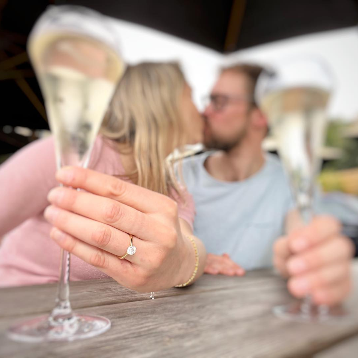 En la publicación de Valeria Ortega se puede ver en primer plano su anillo de compromiso, mientras de foto se aprecia a la pareja en un romántico momento.
