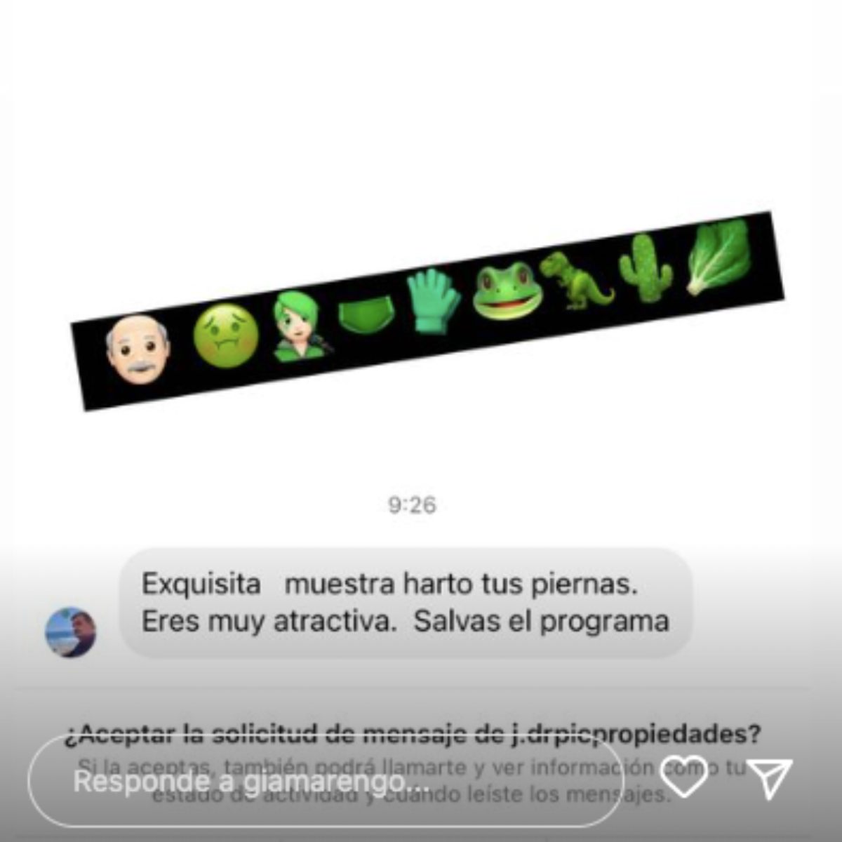 Y es que por medio de sus mensajes directos, le llegó un desubicado mensaje, que vendría de parte de un hombre mayor.