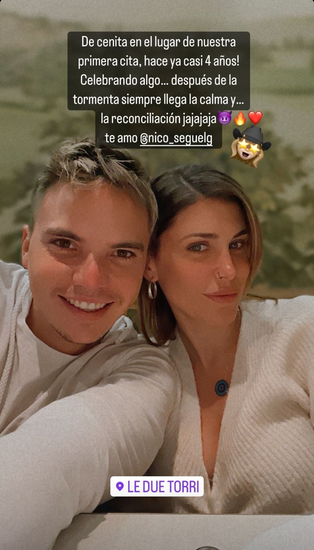 "Celebrando algo... después de la tormenta siempre llega la calma y la reconciliación jajaja... Te amo @nico_seguelg", agregó la ex conejita Playboy.