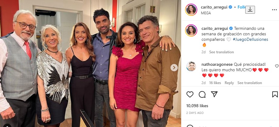 "Terminando una semana de grabación con grandes compañeros 🤍 #JuegoDeIlusiones 🔥", escribió Carito Arregui al pie de las postales. Estas desataron una catarata de elogios para el trabajo que hacen todos en la teleserie. Sin embargo, una internauta aprovechó la oportunidad para criticar el aspecto físico de la mamá de Mayte Rodríguez.