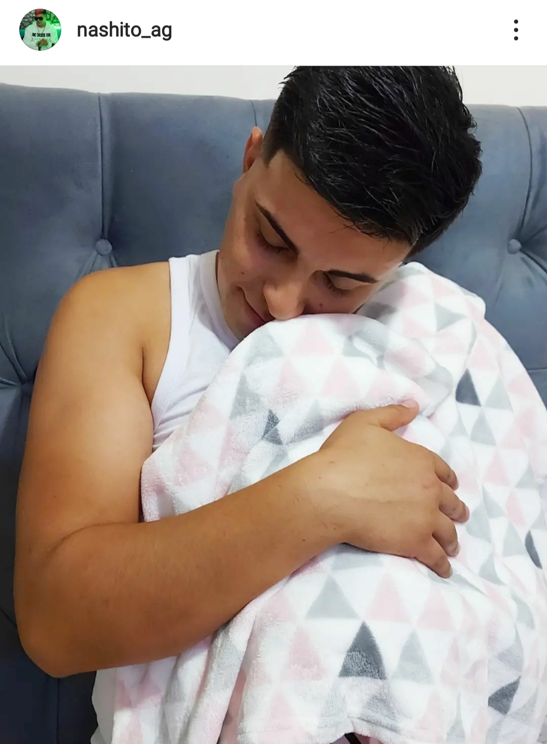 'Y ya está con nosotros @nashito_ag mi hermoso arcoíris 😍🥰🌈 Me tiene loca de amor, cada día más. Ada Mía elegida de Dios 🌹🌈 Te amamos con el alma', comenzó relatando Ingrid Aceitón en su cuenta de Instagram.