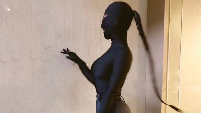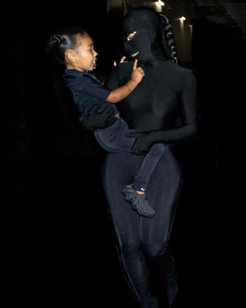 A través de su cuenta oficial de Instagram, Kim Kardashian publicó varias fotografías donde luce una pieza de Balenciaga. El atuendo es negro de pie a cabeza, y está integrado por un leggin que hizo juego con un top ceñido de cuello alto.