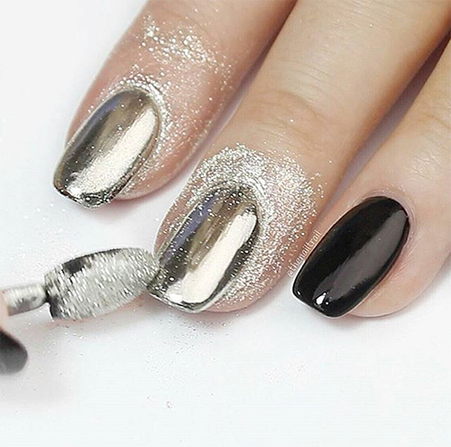 - Efecto metalizado (también lo venden como 'efecto espejo'. Es una especie de polvito muy fino y lo encuentras en varios colores en cualquier tienda de productos para manicure. ¡No cuesta más de 3 mil pesos!).