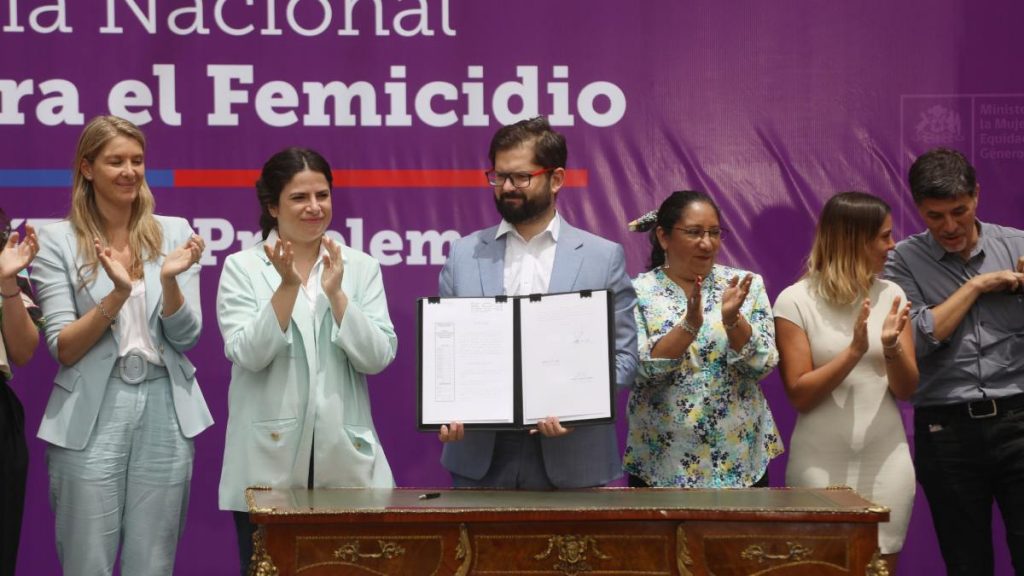 Durante la mañana de este lunes y en el marco del día Nacional contra el femicidio, el Presidente Gabriel Boric y la Ministra de la Mujer y Equidad, Antonia Orellana, dirigieron la ceremonia en la que se promulgó la ley que tipifica el suicidio femicida en la legislación chilena.