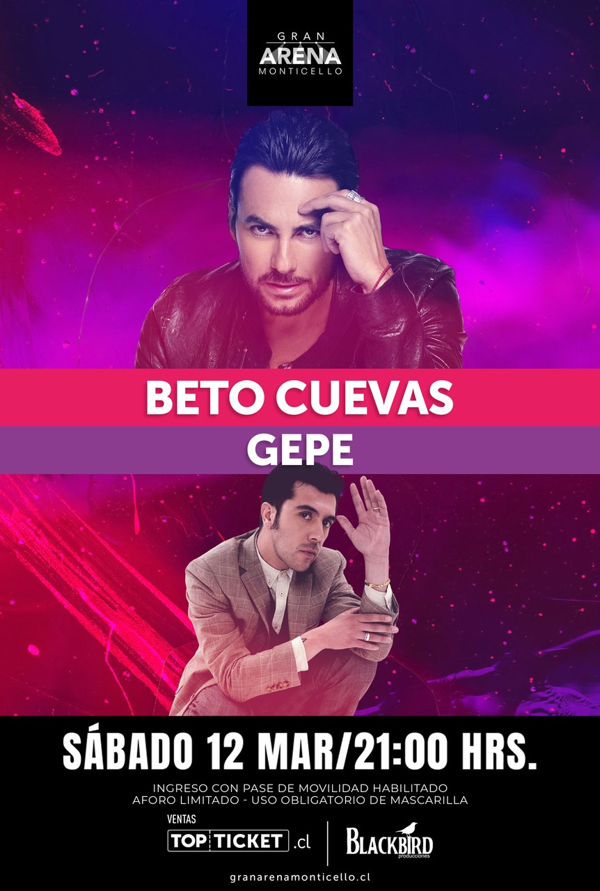 Los destacados músicos chilenos, Beto Cuevas y Gepe, llegarán al Gran Arena Monticello el próximo sábado 12 de marzo, a las 21.00 horas.