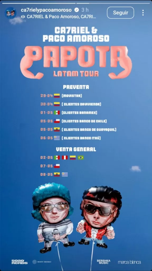 ¿Cuándo será la preventa de Ca7riel y Paco Amoroso en Chile 2025?