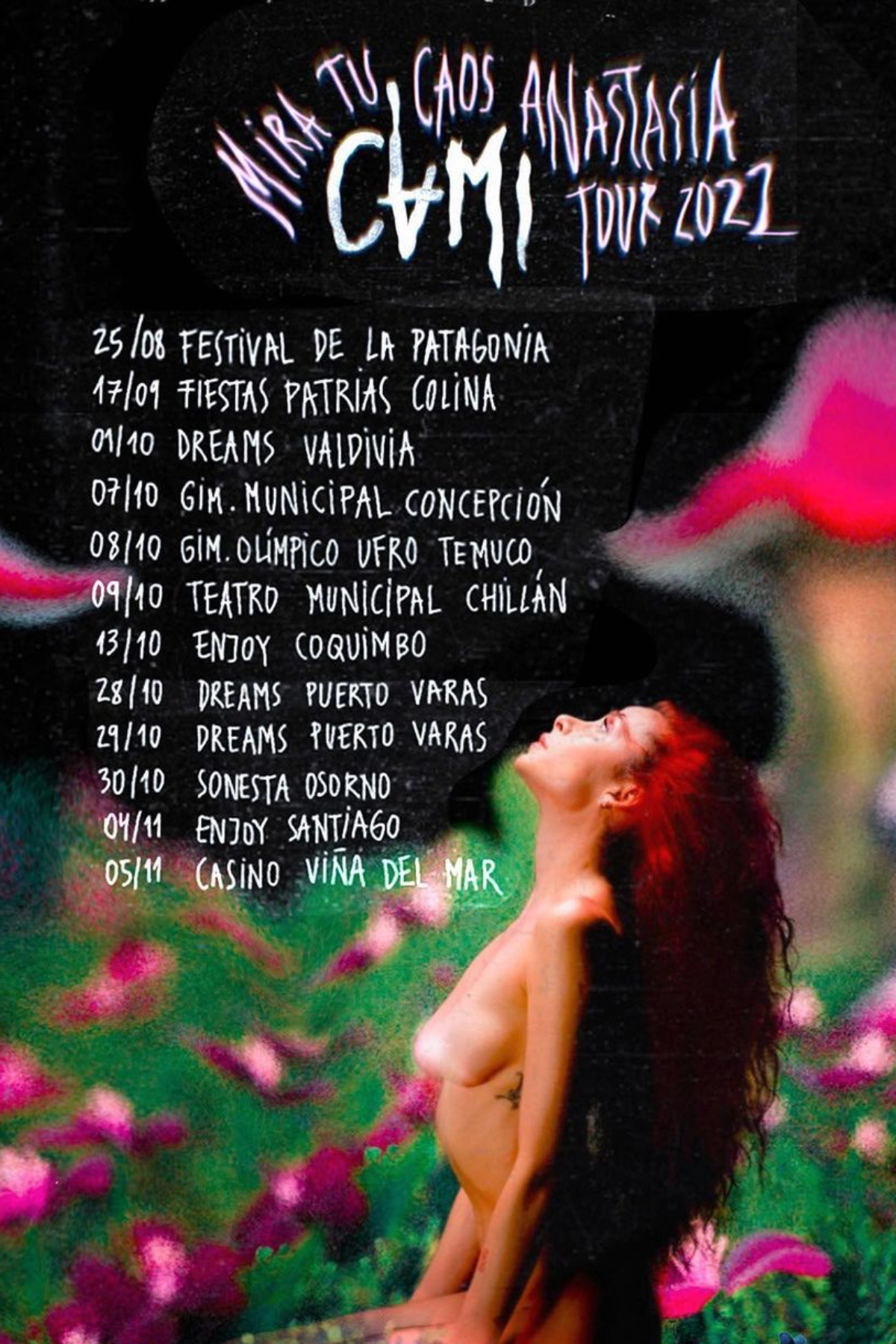 La artista estará recorriendo el país con su tour Mira Tu Caos Anastasia, donde presentará las canciones de su nuevo álbum de estudio. Además, conquistará a sus fanáticos con sus clásicos que la llevaron a triunfar y ser una de las cantantes chilenas más influyentes en el mundo.