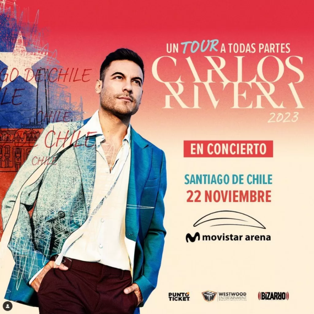 Según contó el propio Carlos Rivera, su concierto en Chile se realizará el próximo 22 de noviembre en Movistar Arena en el marco de su gira Un tour a todas partes.