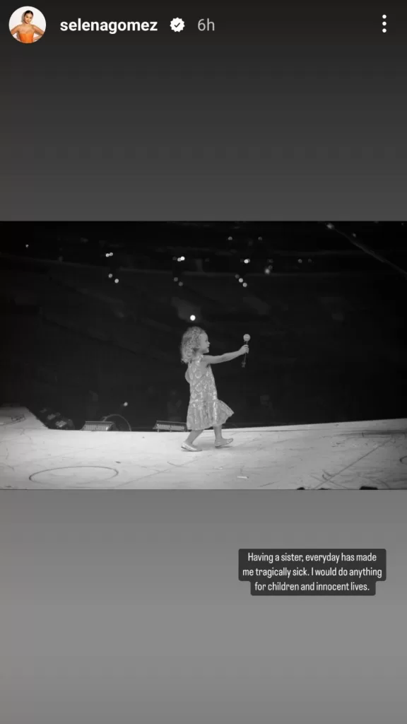 “Necesitamos proteger a todas las personas, especialmente a los niños, y parar la violencia por el bien. Siento mucho que mis palabras o un hashtag nunca sean suficientes para todos. Es solo que, no puedo soportar el hecho de que gente inocente está siendo herida. Eso es lo que me enferma. Desearía poder cambiar el mundo, pero una publicación no lo hará. Mucho amor, Selena”, indicó, para después postear una foto de su hermana.