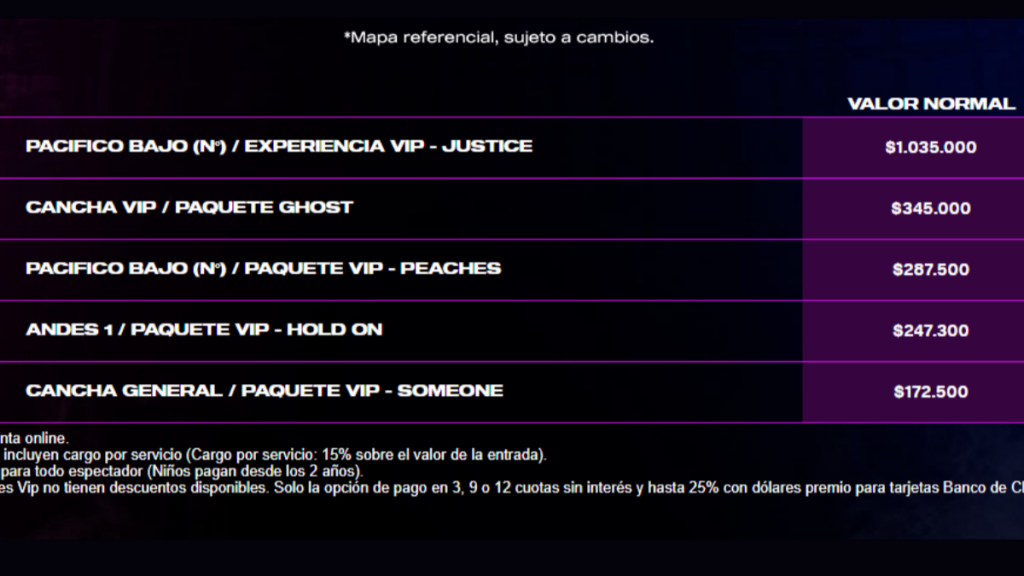 Sin embargo, lo que llamó la atención fueron los altos precios del Justice World Tour en Chile.