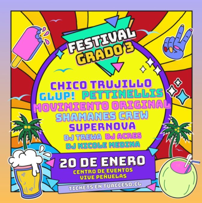 Llegó el verano, la temporada de los mejores eventos al aire libre. Es así como los festivales de música se comenzarán a tomar distintas ciudades del país, tal como la Fiesta Grado 3.