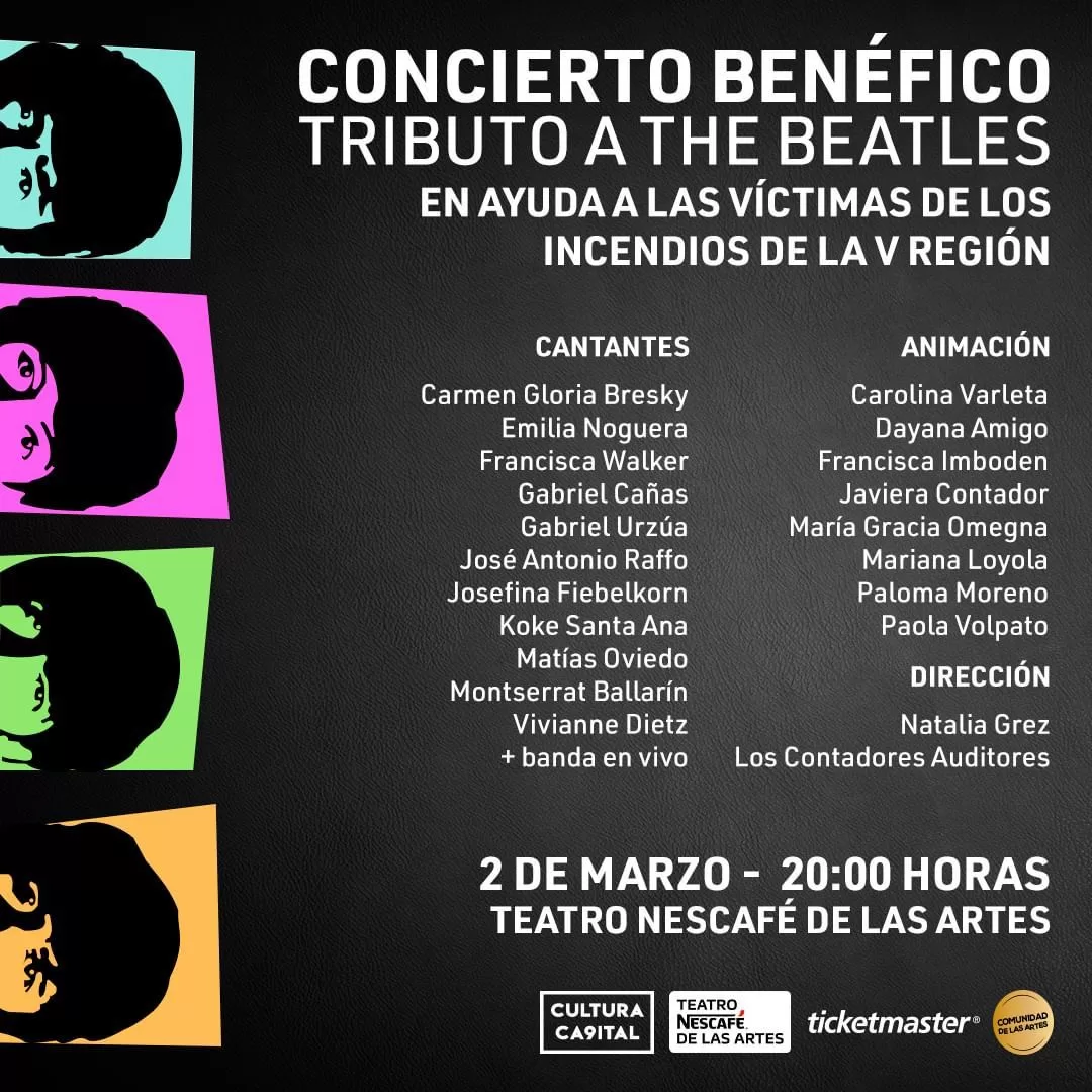De acuerdo a la información oficial, se realizará un concierto benéfico con tributo a The Beatles, con el fin de ayudar a las víctimas de los incendios que han afectado varias zonas de Chile.
