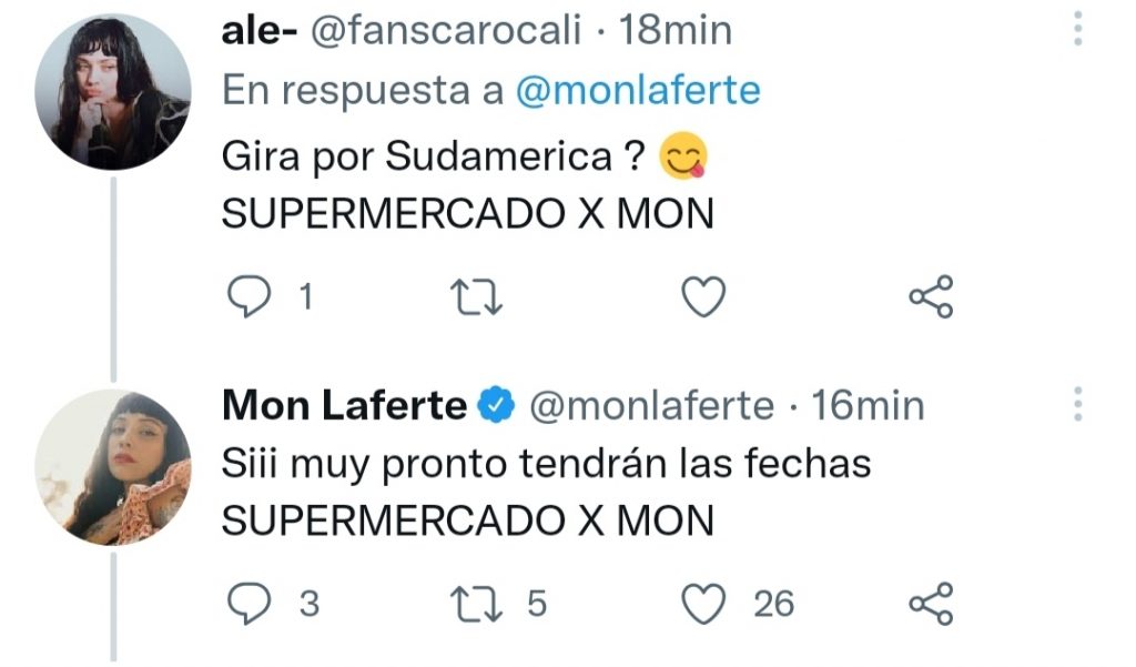 A través de una dinámica de preguntas, a raíz del estreno de "Supermercado", la cantautora aseguró en su cuenta de Twitter que hará una gira por Sudamérica, con Chile incluido.