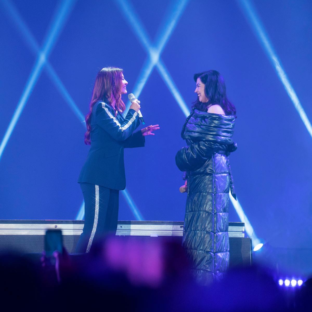 Además, durante su show, Mon Laferte invitó a Myriam Hernández para que interpreten juntas dos temas, uno de ellos Amor Completo y el otro Herida.