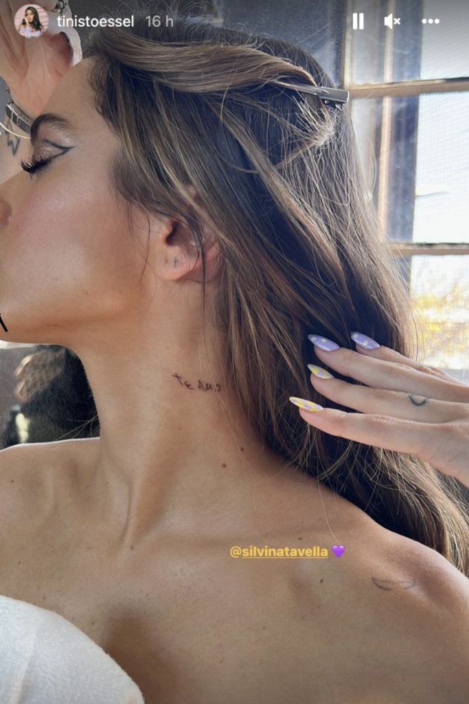 En sus historias de Instagram, Tini Stoessel compartió una fotografía de su cuello con la palabra te amo, escrita muy fina.