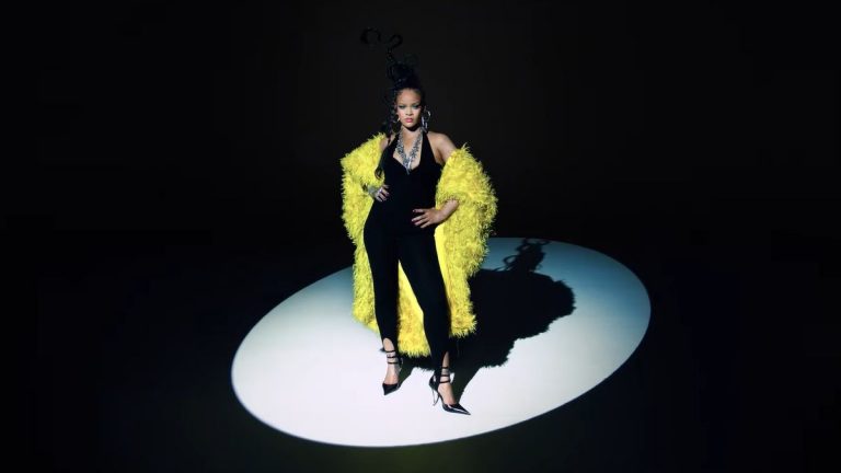 Así es como la cantante se contonea por una pasarela iluminada en medio de la oscuridad mientras se escuchan diversas voces que hablan de su receso: “¿Dónde has estado, Rihanna?”; “Amiga, Rihanna, te hemos estado esperando”. Las voces se detienen cuando ella hace la señal de silencio, como una manera de hacer callar los comentarios durante su silencio.