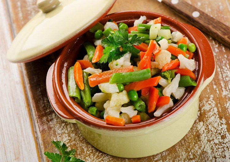 -Verduras y vegetales: Son los que más ganan al cocinarse al vapor, ya que se potencia su sabor y se conservan todos sus nutrientes, excepto en los de hoja verde, como espinacas y acelgas, que pueden perder un poco su color. Las espinacas, los guisantes o el zapallo se cocinan al vapor en unos 4 o 5 minutos, mientras que el brócoli, el poroto verde y la coliflor necesitan entre 8 y 10 minutos. Otras verduras y hortalizas como las papas pequeñas o zanahorias pueden cocinarse en 10 a 12 minutos.