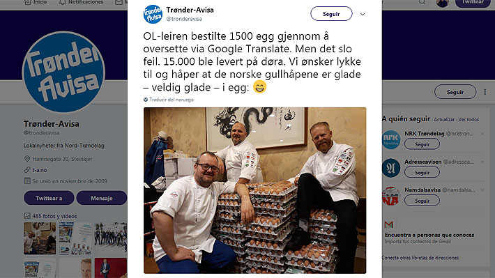 Los chefs del equipo noruego recibieron un cargamento de 15 mil huevos por error. ¿Qué pasó? Intentaron traducir en Internet el número para hacer el pedido y la traducción les agregó un cero más, por lo que de 1.500 huevos recibieron 15 mil. ¡Ups! "Recibimos medio camión cargado de huevos (...) La entrega no tenía fin (...) Fue absolutamente increíble", declaró el chef Stale Johansen al medio noruego Aftenposten.