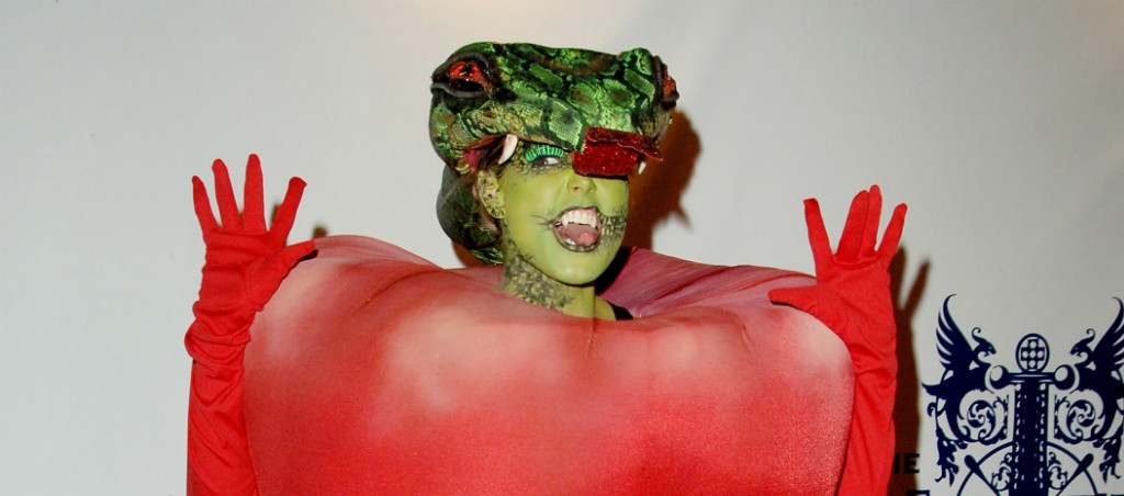 Antes de su separación, se divertían con este singular traje de Eva y su manzana.